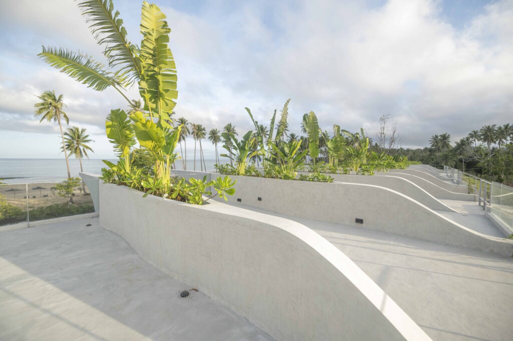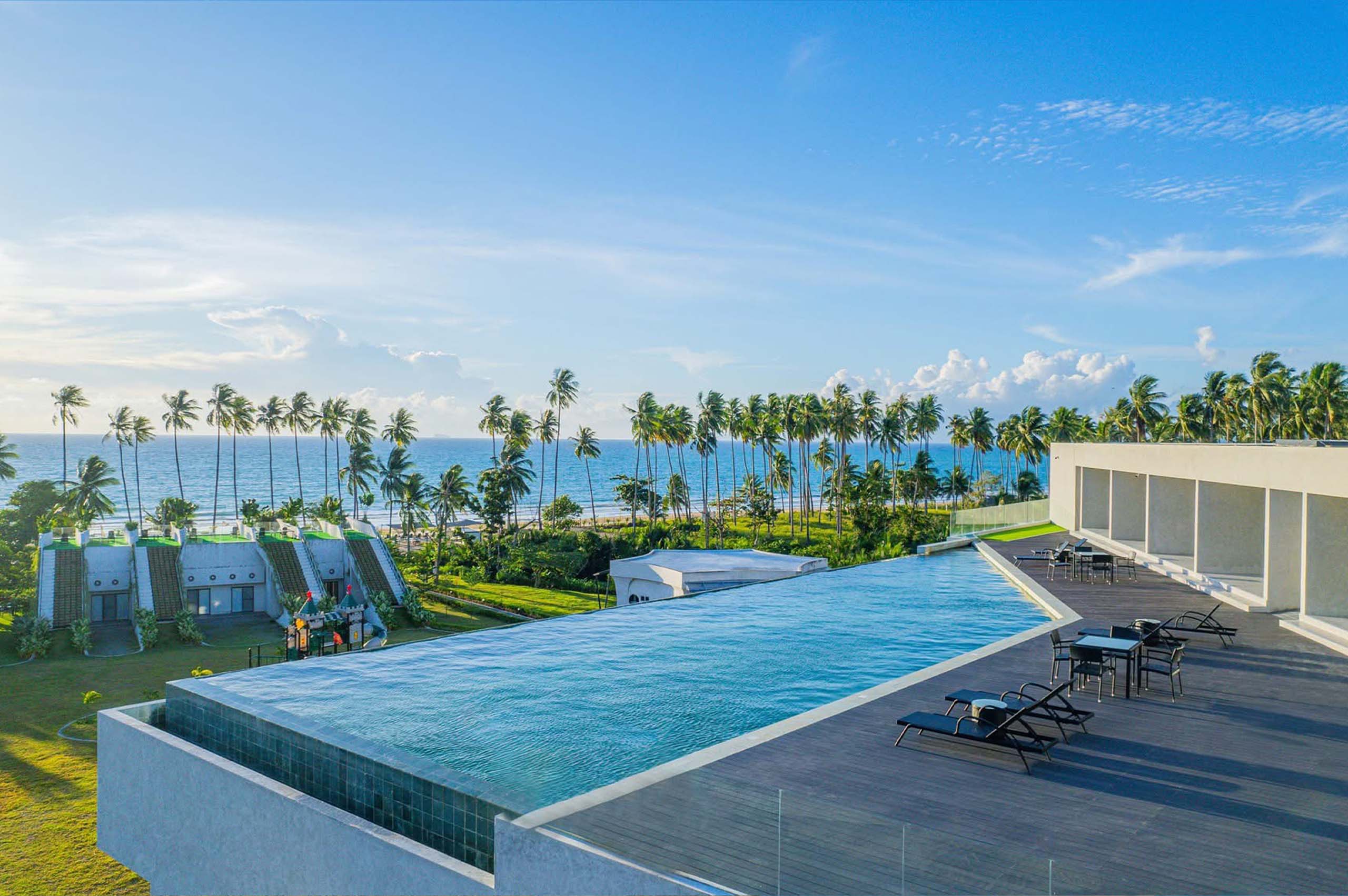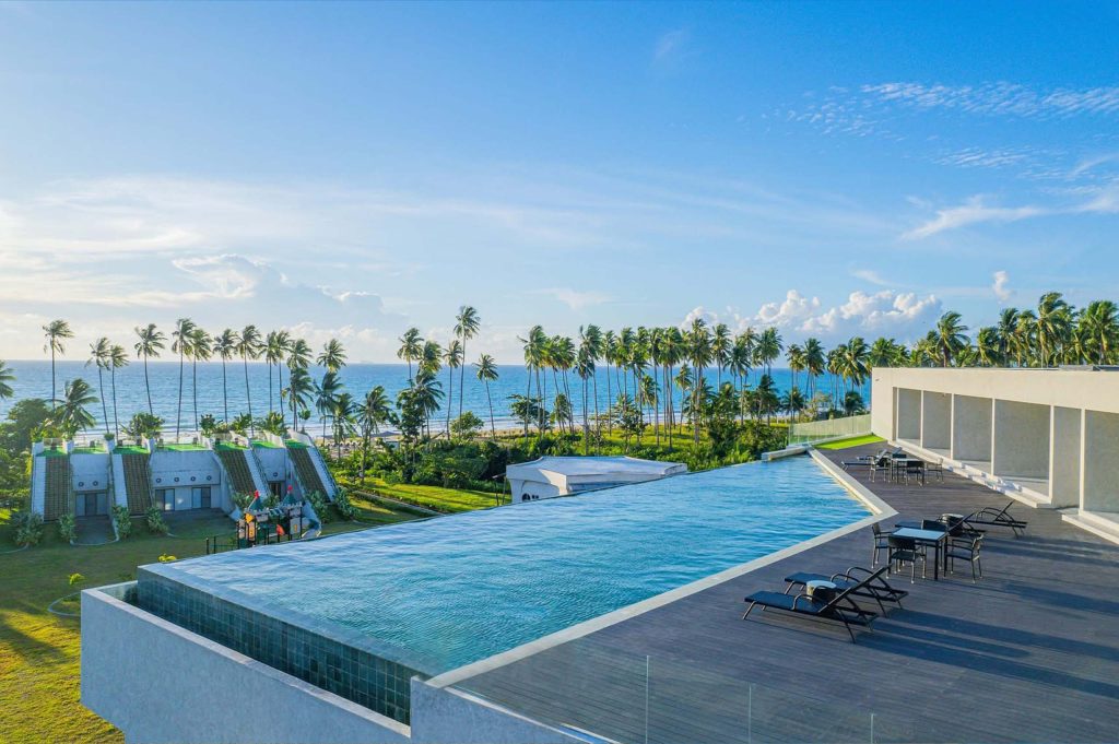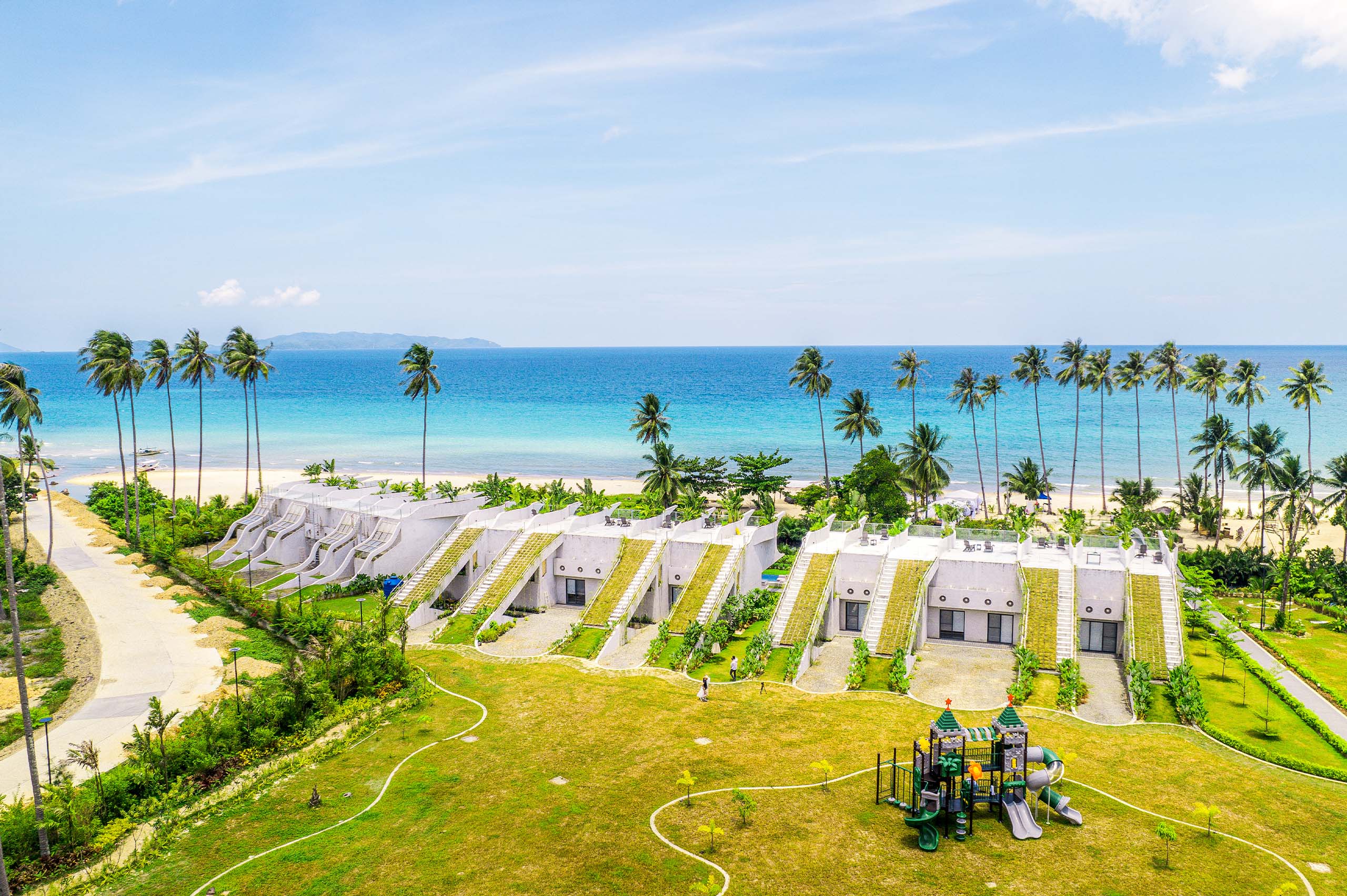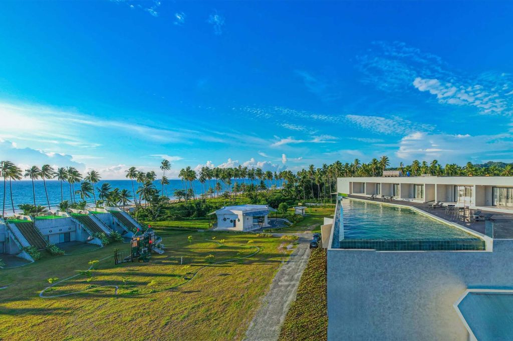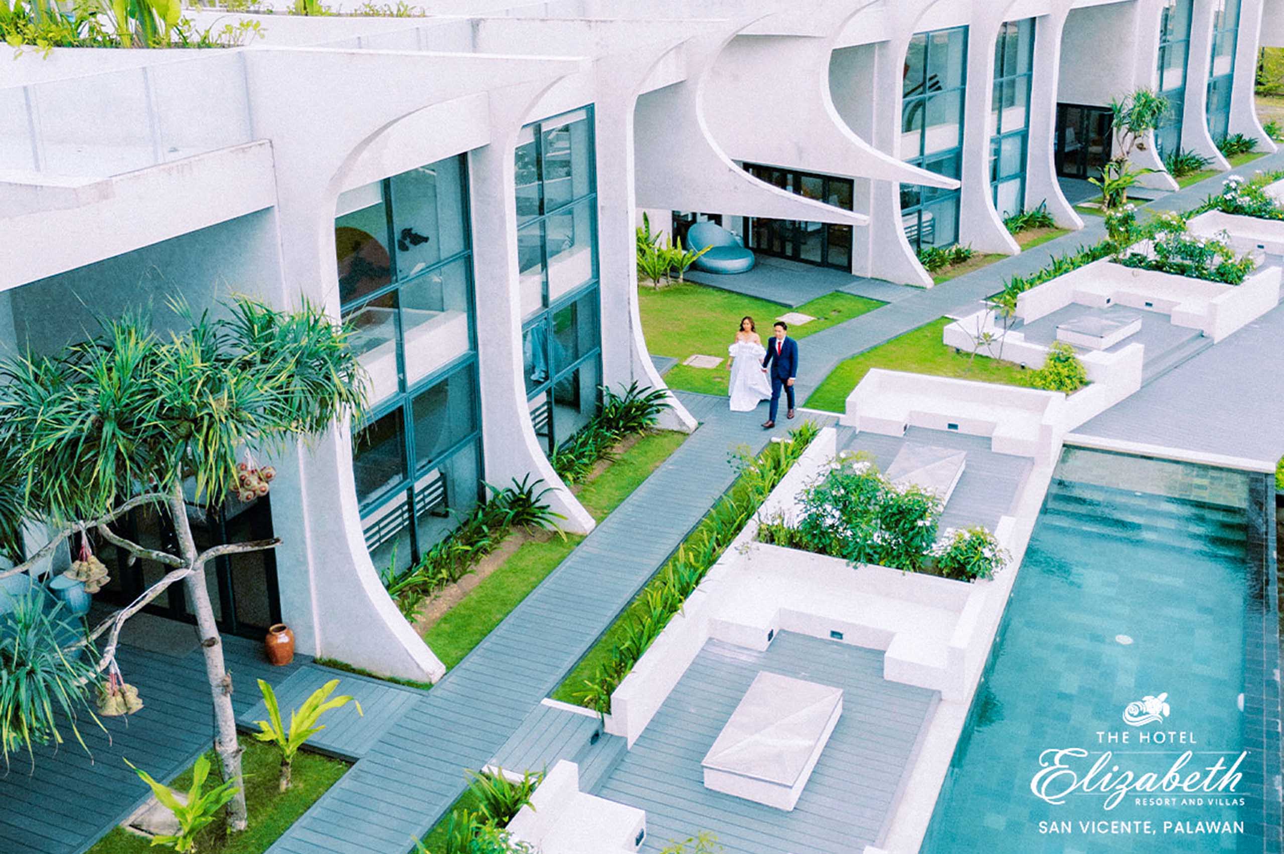 The Hotel Elizabeth Resort and Villas is a modern Filipino seascapes-inspired beachfront resort hotel meticulously designed by prodigious Filipino architect, Carlo Calma. It is aesthetically situated along the shores of San Vicente Long Beach, the longest white beach in the Philippines, and the second longest white beach in Southeast Asia. The 14.7 km coastline of crystal clear waters and powdery white sand are lined with endless towering coconut trees.