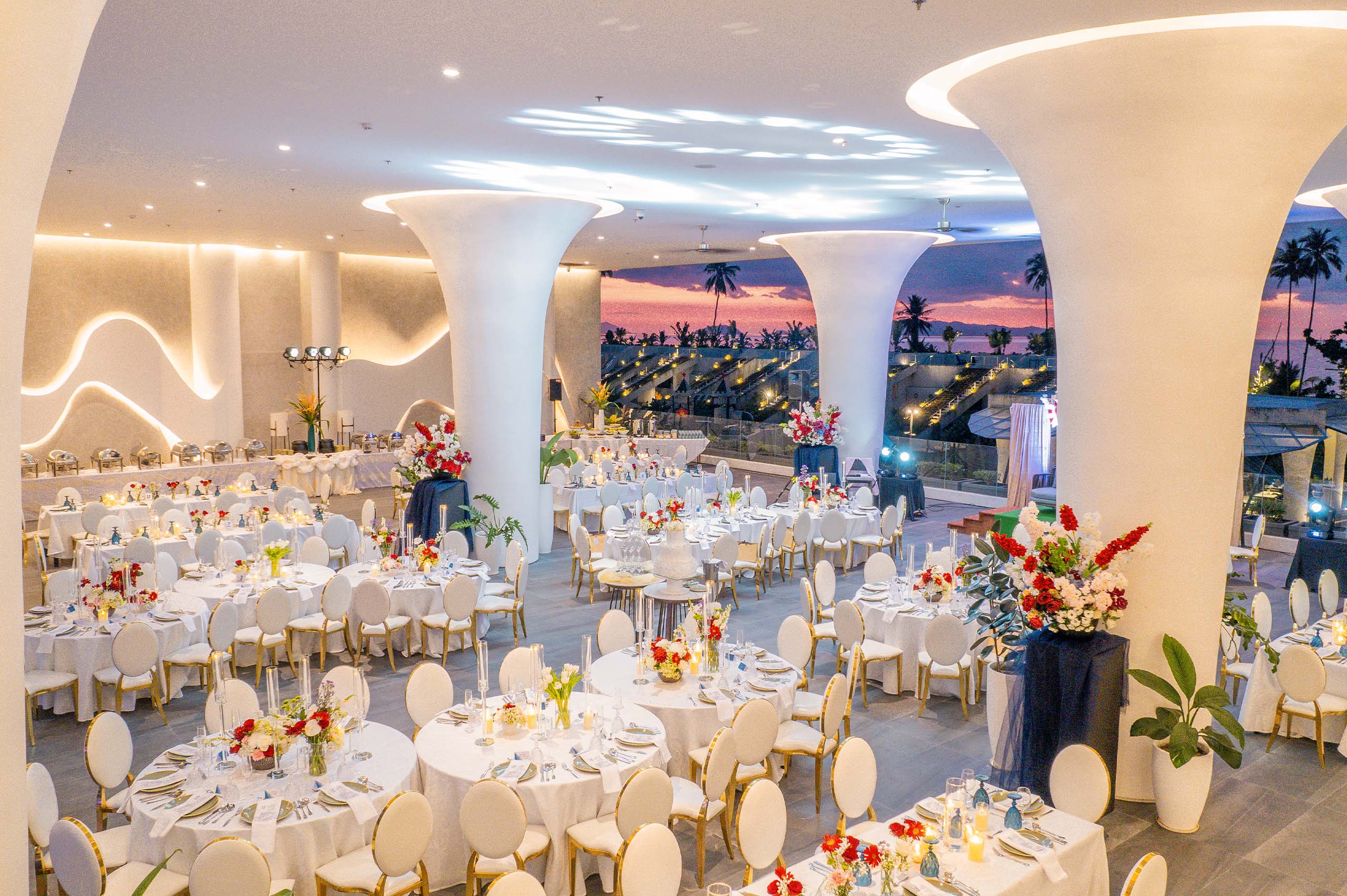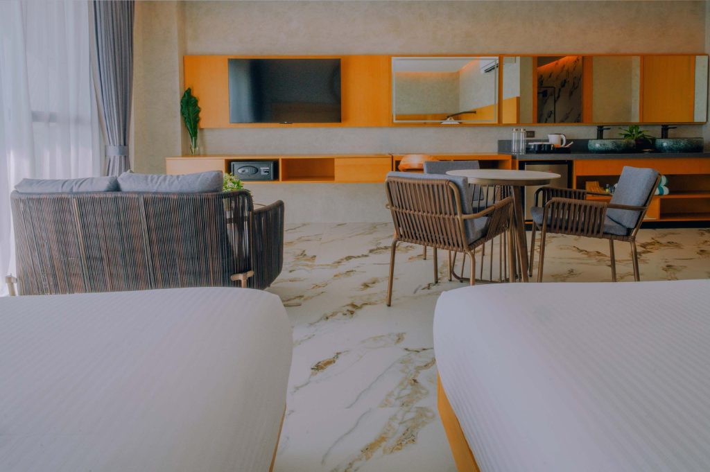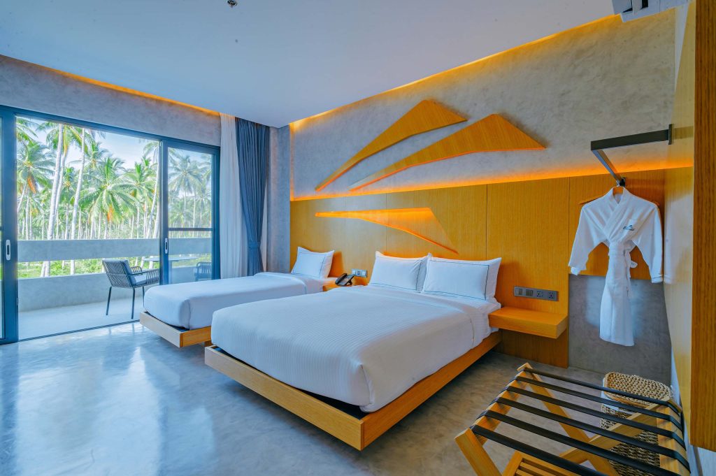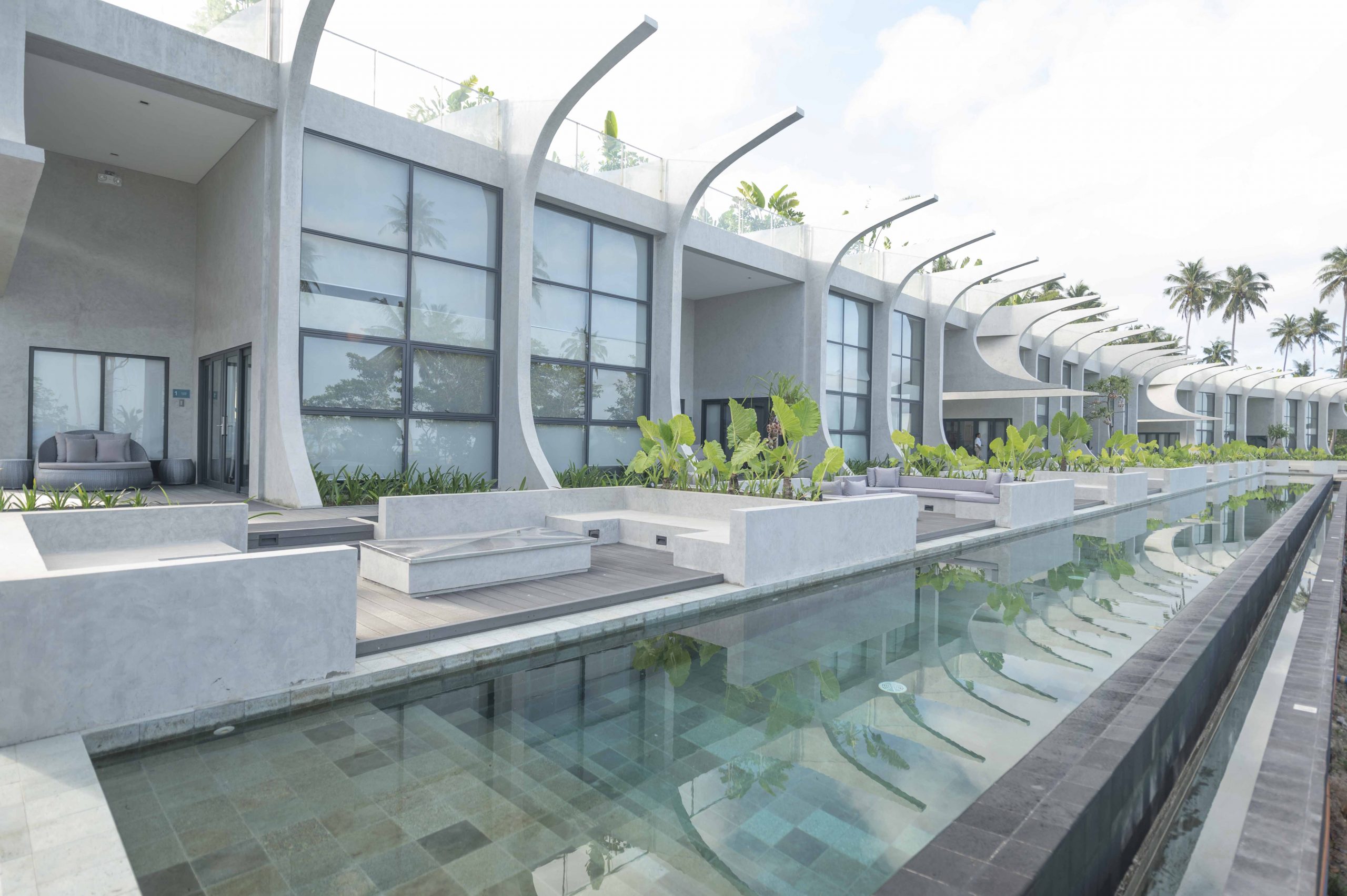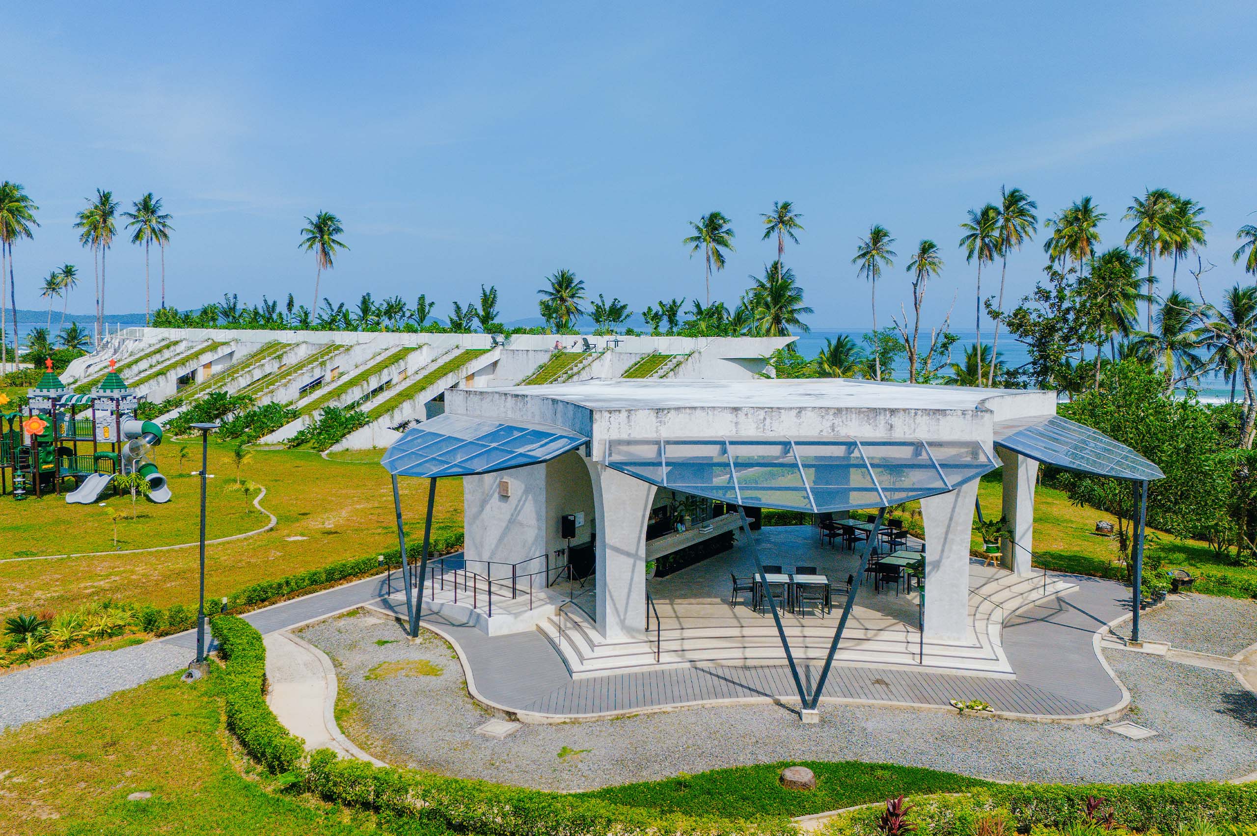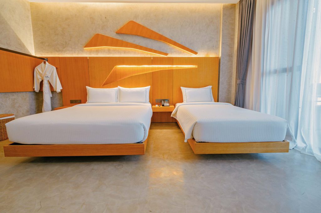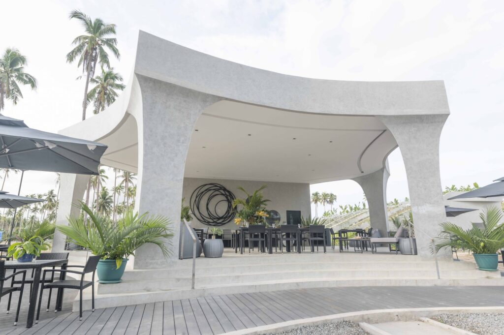 The Hotel Elizabeth Resort and Villas is a modern Filipino seascapes-inspired beachfront resort hotel meticulously designed by prodigious Filipino architect, Carlo Calma. It is aesthetically situated along the shores of San Vicente Long Beach, the longest white beach in the Philippines, and the second longest white beach in Southeast Asia. The 14.7 km coastline of crystal clear waters and powdery white sand are lined with endless towering coconut trees.