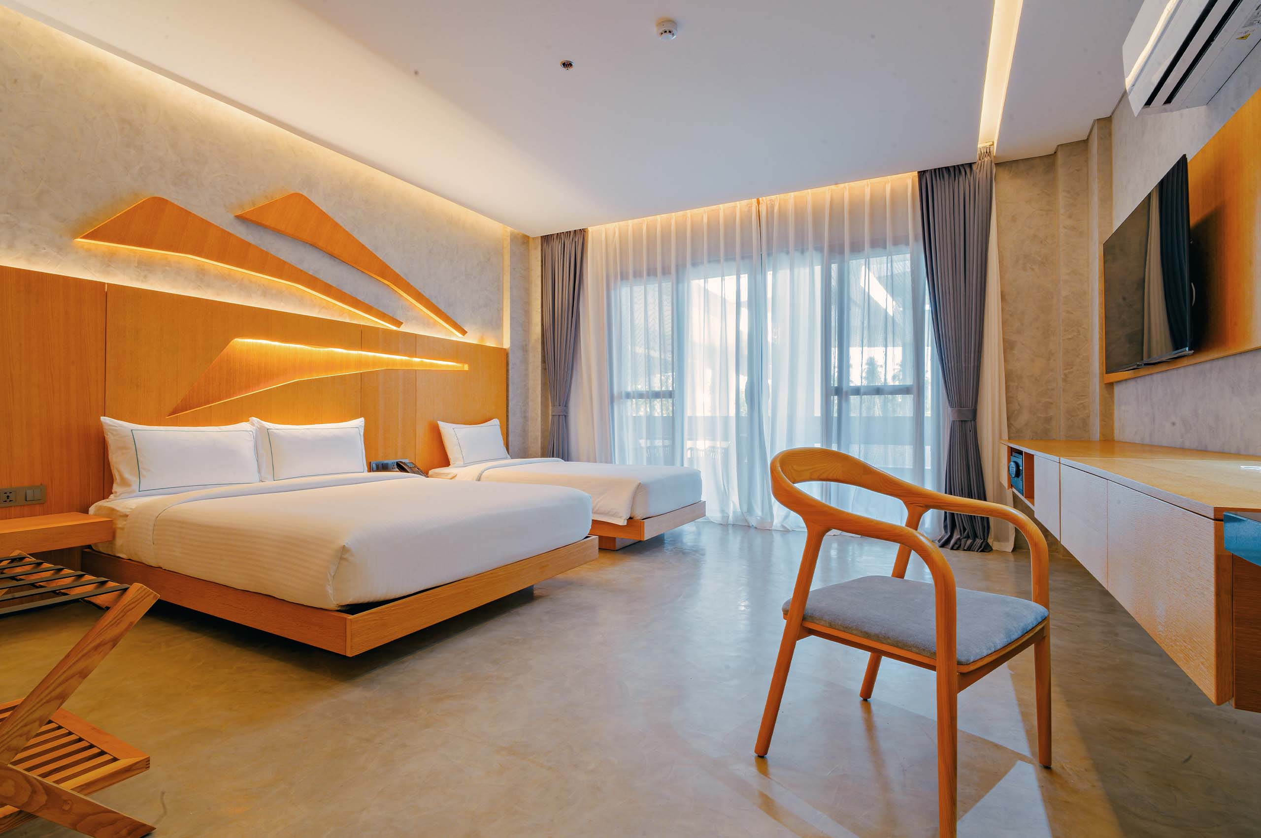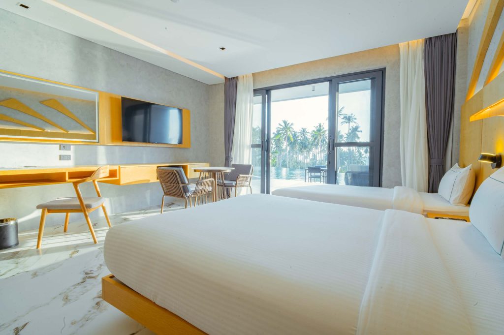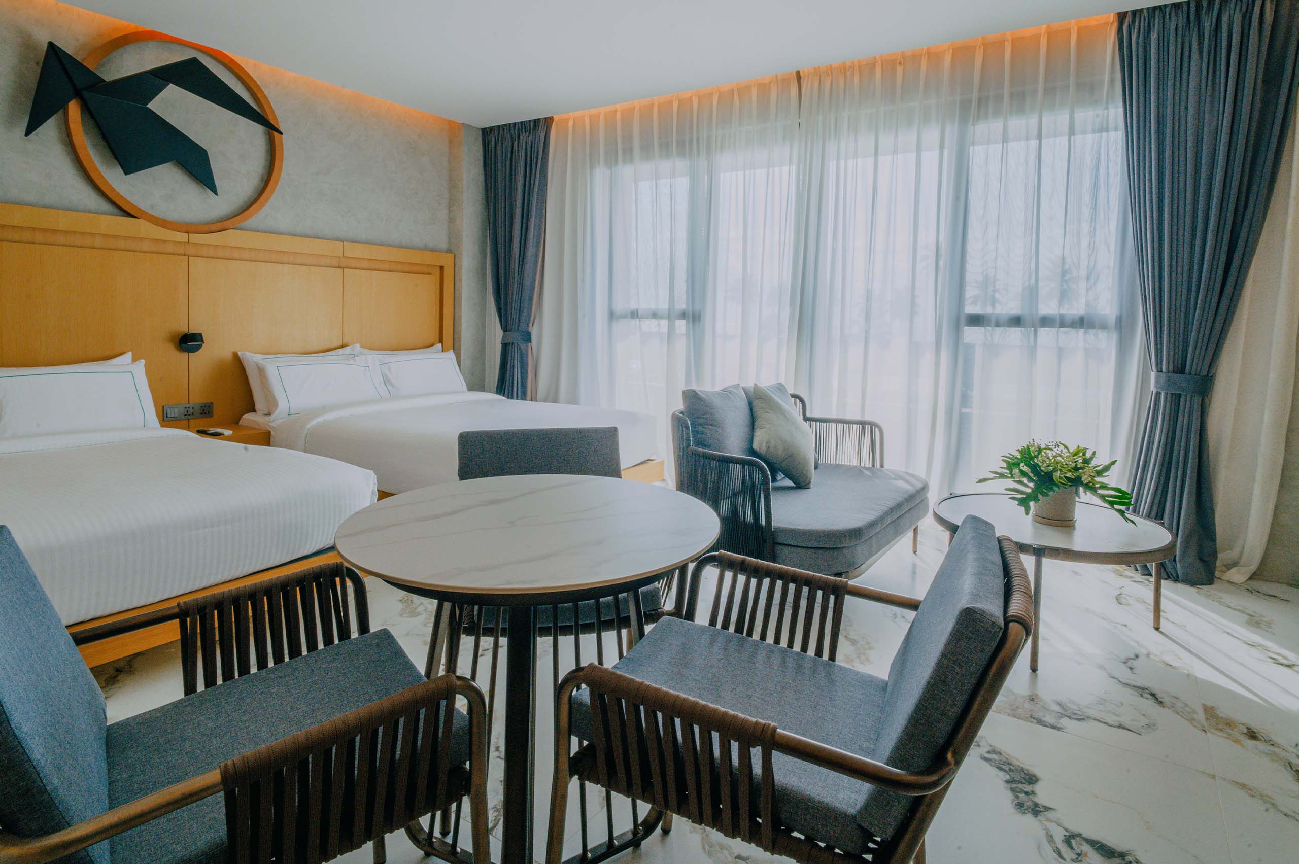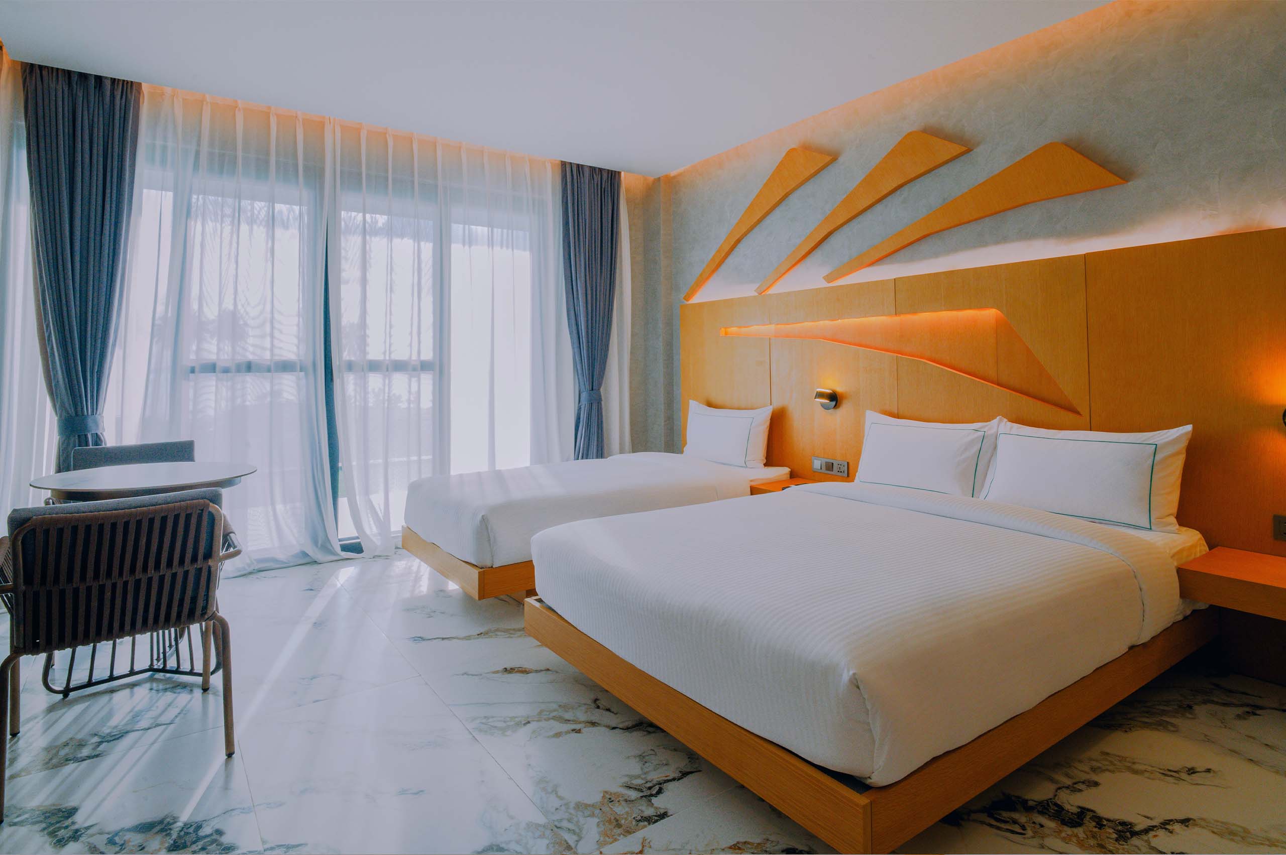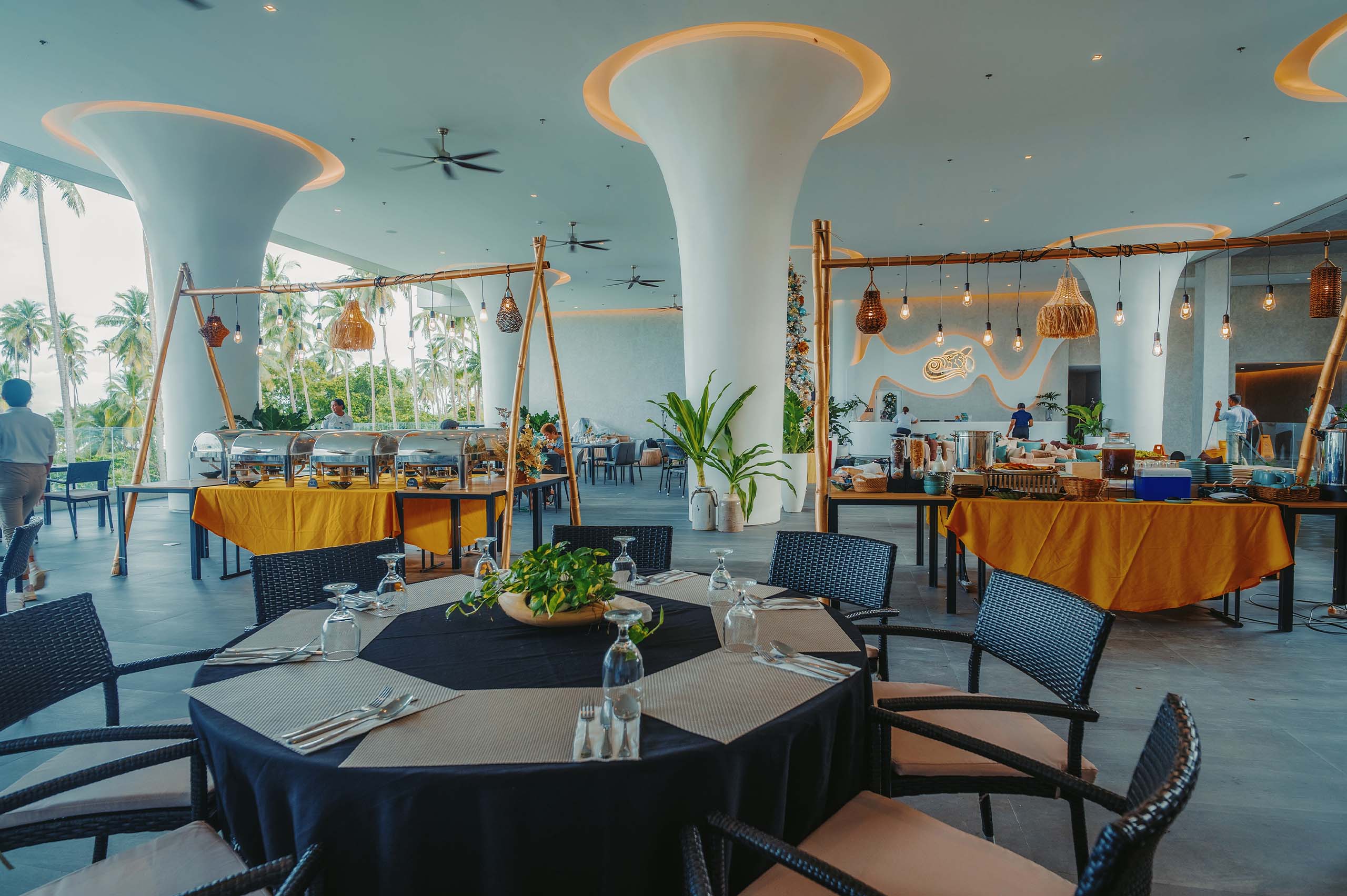 The Hotel Elizabeth Resort and Villas is a modern Filipino seascapes-inspired beachfront resort hotel meticulously designed by prodigious Filipino architect, Carlo Calma. It is aesthetically situated along the shores of San Vicente Long Beach, the longest white beach in the Philippines, and the second longest white beach in Southeast Asia. The 14.7 km coastline of crystal clear waters and powdery white sand are lined with endless towering coconut trees.