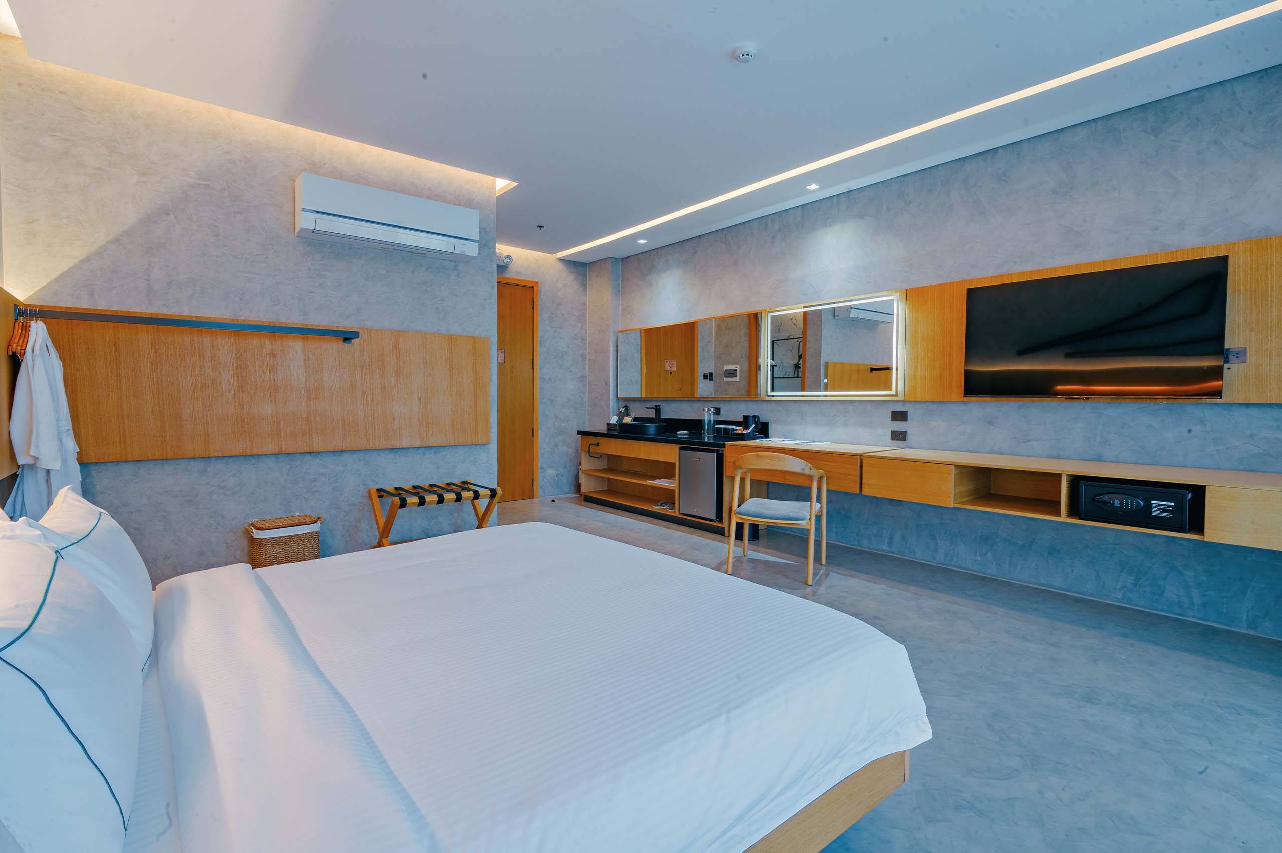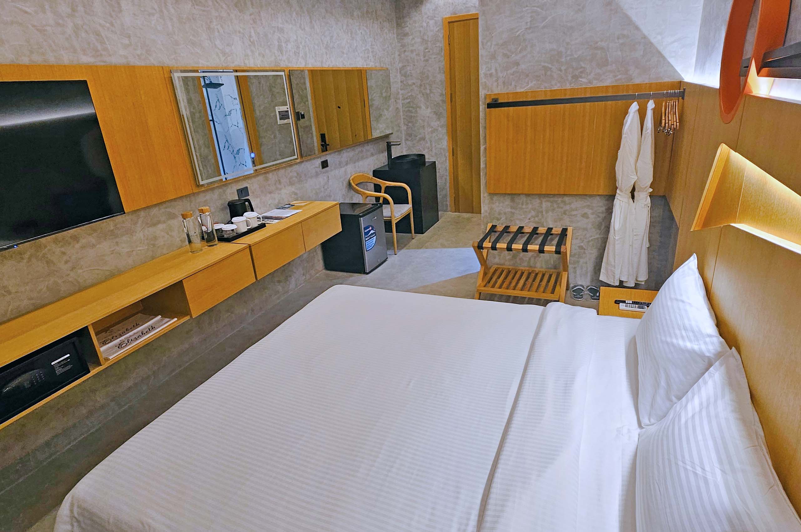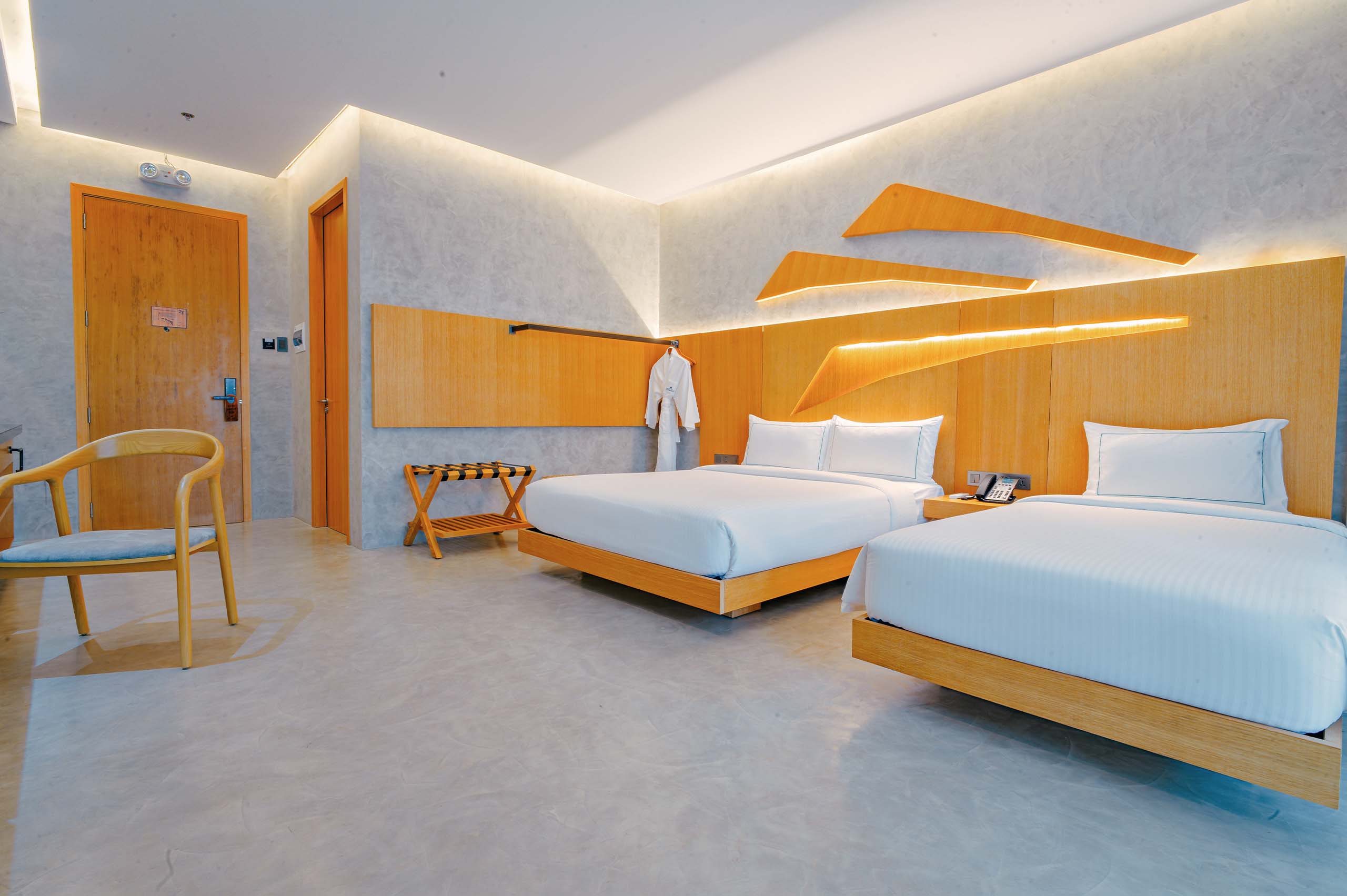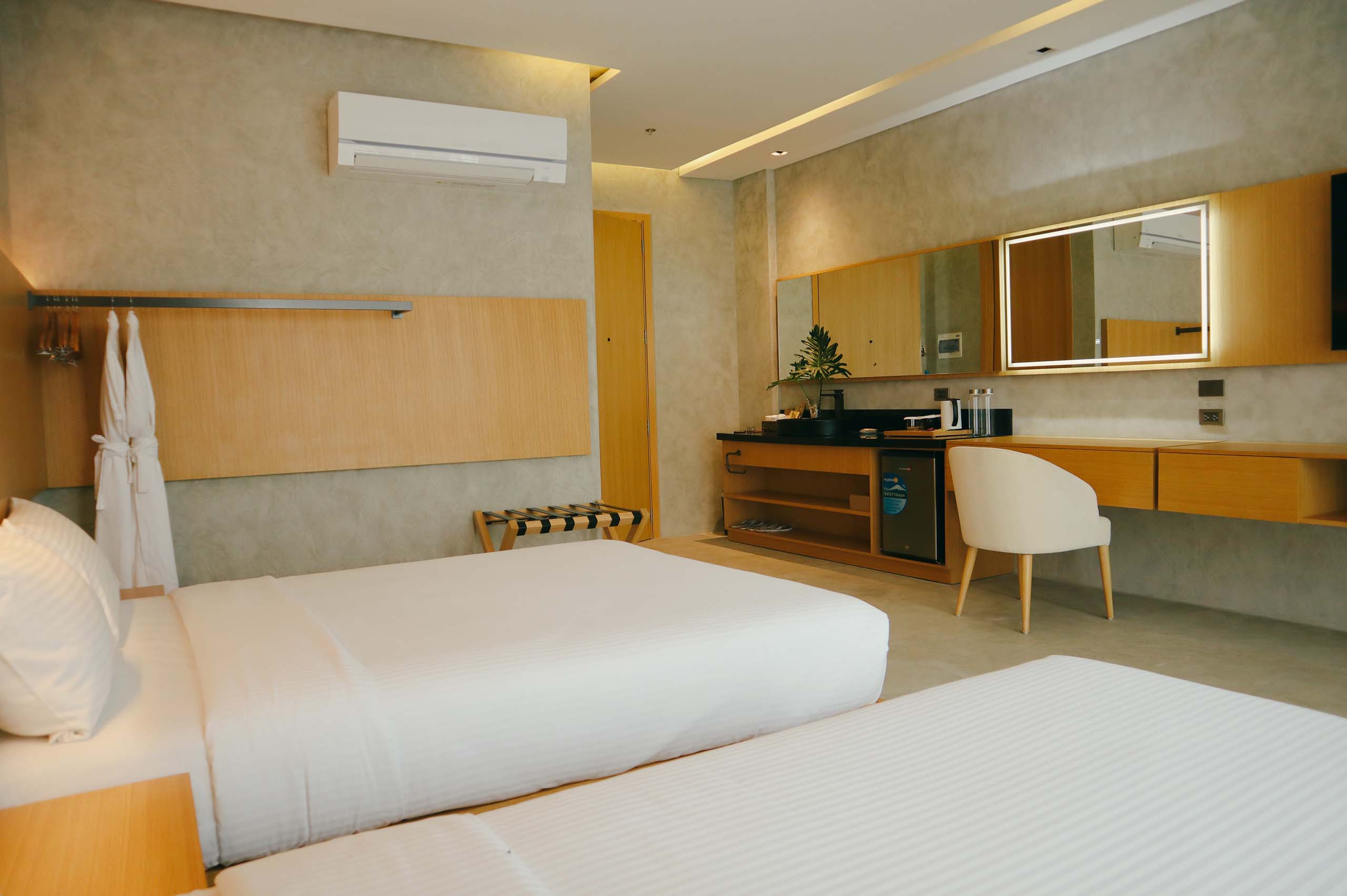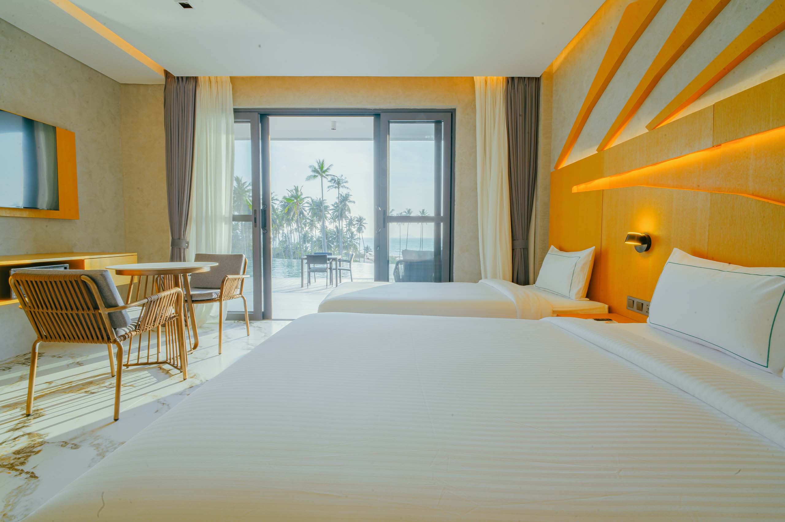 The Hotel Elizabeth Resort and Villas is a modern Filipino seascapes-inspired beachfront resort hotel meticulously designed by prodigious Filipino architect, Carlo Calma. It is aesthetically situated along the shores of San Vicente Long Beach, the longest white beach in the Philippines, and the second longest white beach in Southeast Asia. The 14.7 km coastline of crystal clear waters and powdery white sand are lined with endless towering coconut trees.