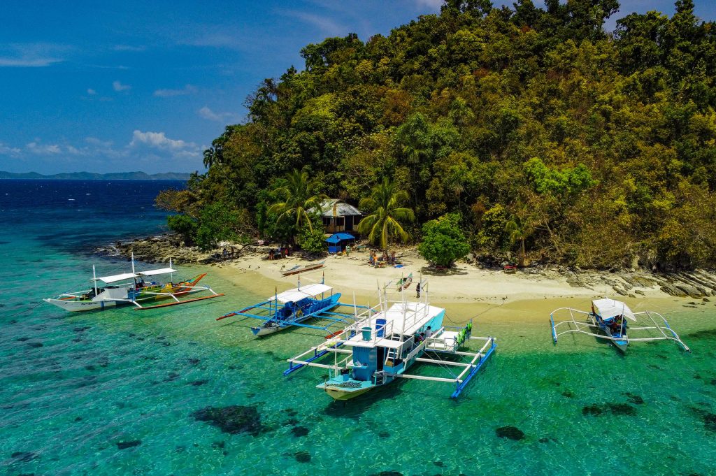 You may fly with Cebu Pacific or Air Swift to El Nido (plus 2 hours drive) or via Philippine Airlines, Cebu Pacific, or Air Swift to Puerto Princesa (plus 2.5 hours drive).