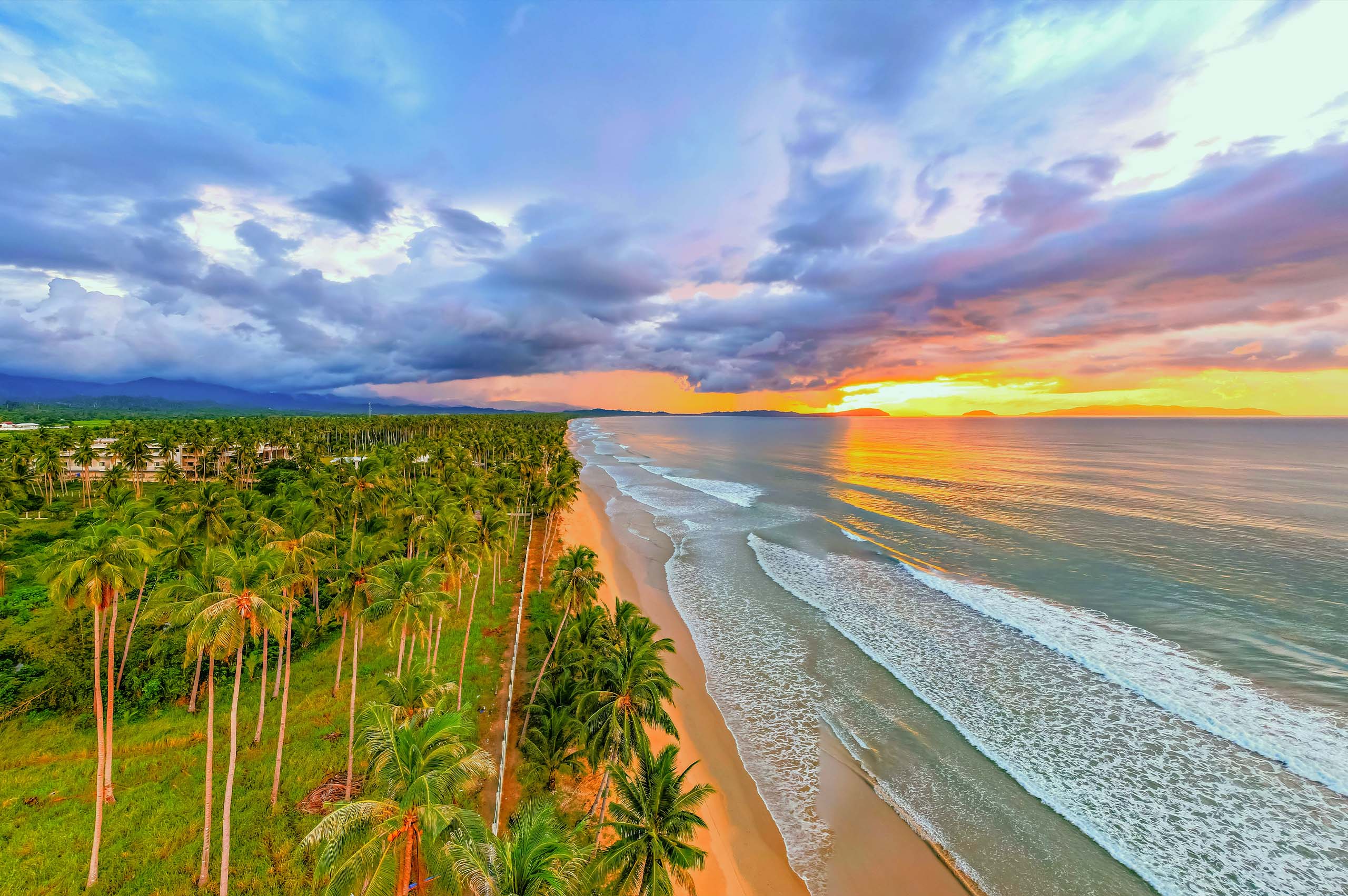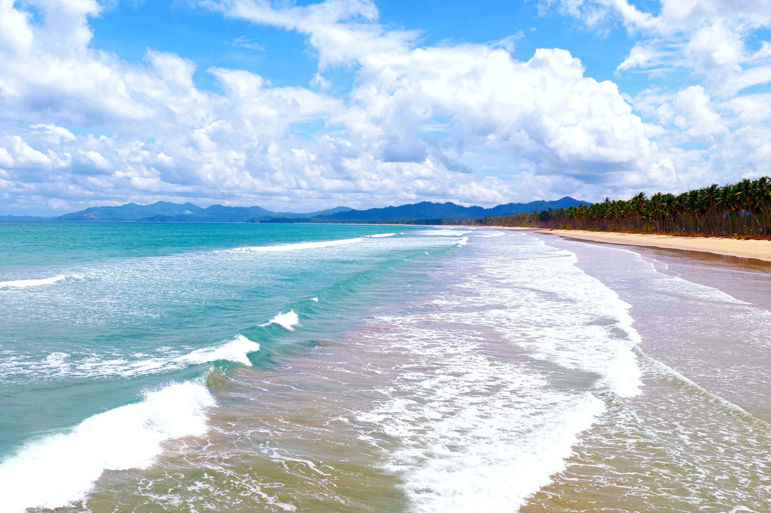 San Vicente Long Beach is the longest white sand beach in the Philippines stretching 14.7km of untouched powdery sand lined with endless towering coconut trees. It is also the second longest white sand beach in Southeast Asia.